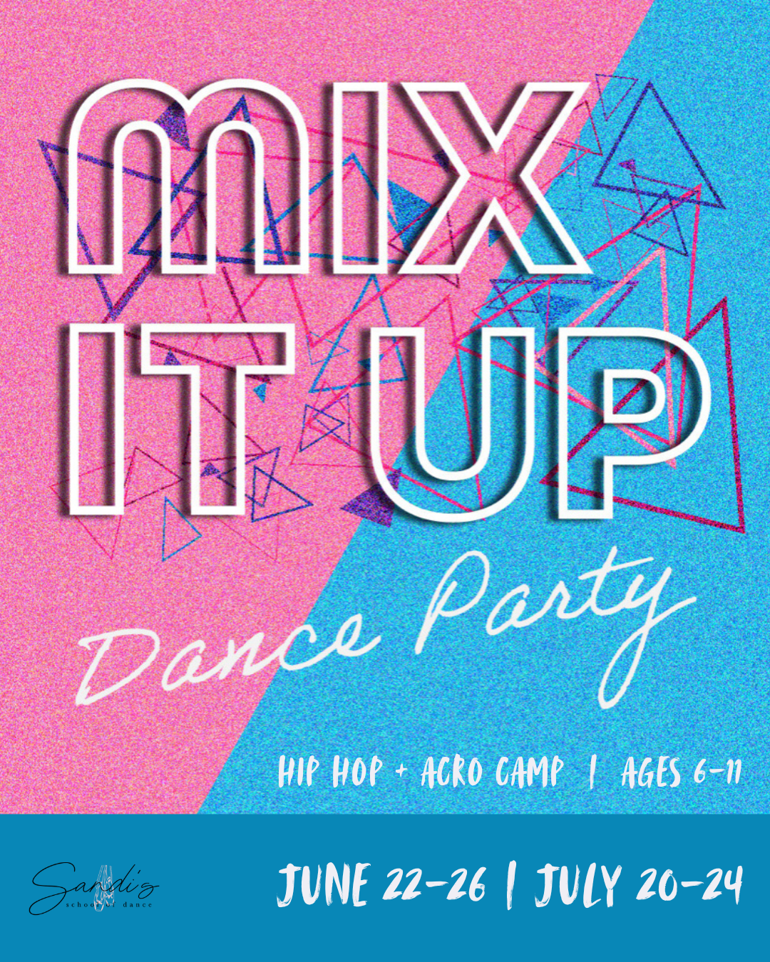Mix It Up Hip Hop + Acro Camp for a daily dose of hip-hop and acro for dancers ages 6-11! This high-energy camp will help dancers with their technique and skills and includes daily crafts and snacks. On Friday, we will finish the camp with a parent show-off.